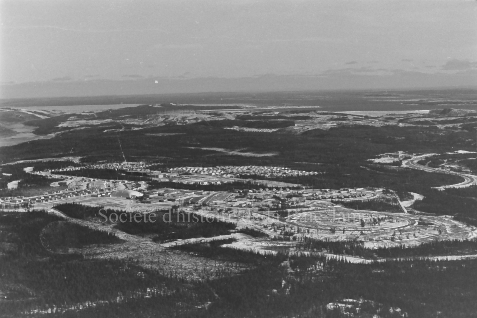 Vue aérienne de Radisson. Inauguration officielle du complexe LG-2, 27 octobre 1979. Ronald Brisson | P146,S1,D5