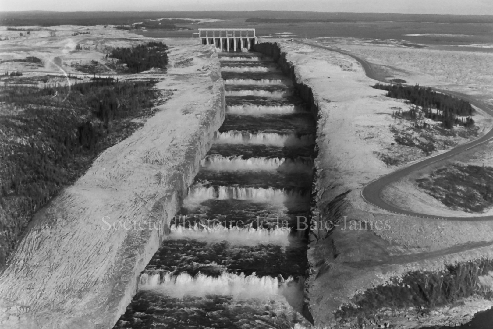L'évacuateur de crues du complexe LG-2 en opération. Inauguration officielle du complexe LG-2, 27 octobre 1979. Ronald Brisson | P146,S1,D5