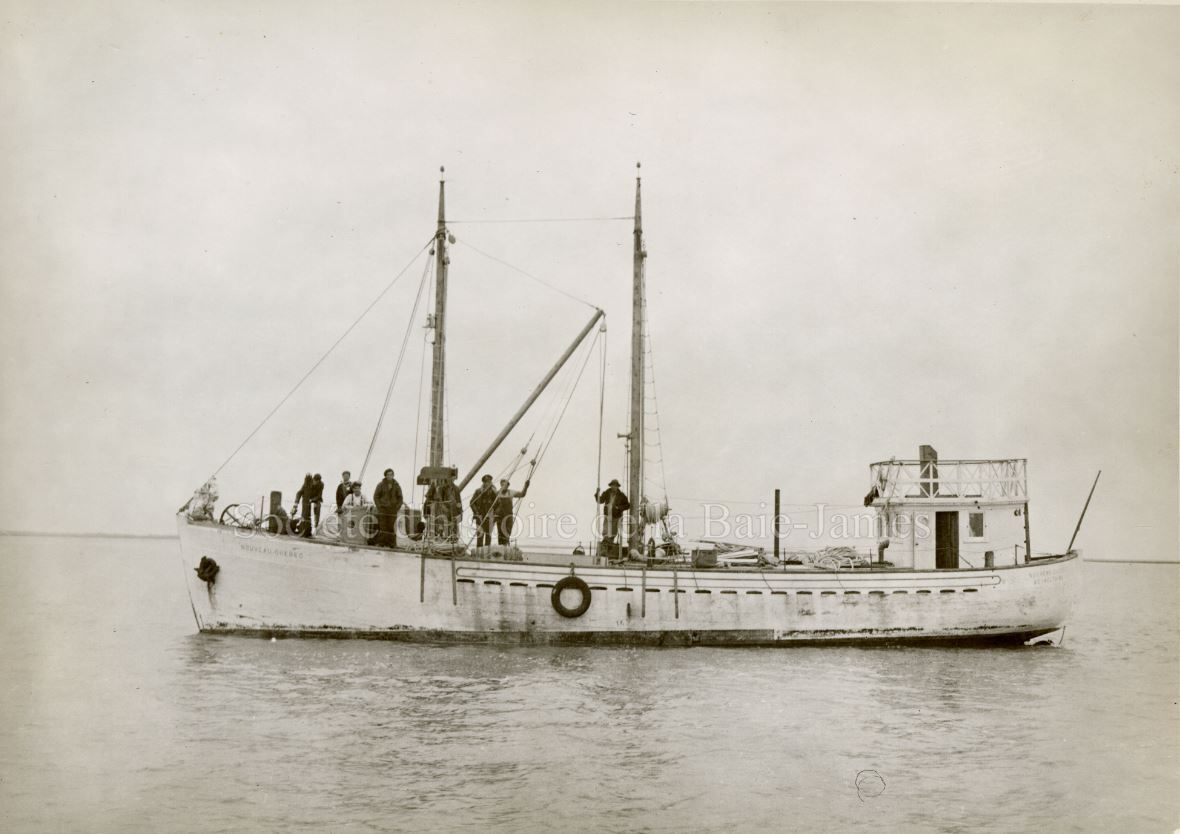 Bateau le Nouveau-Québec, appartenant aux missions catholiques des Oblats à la baie James, dans les années 1930. P195,S1,D1,P1.