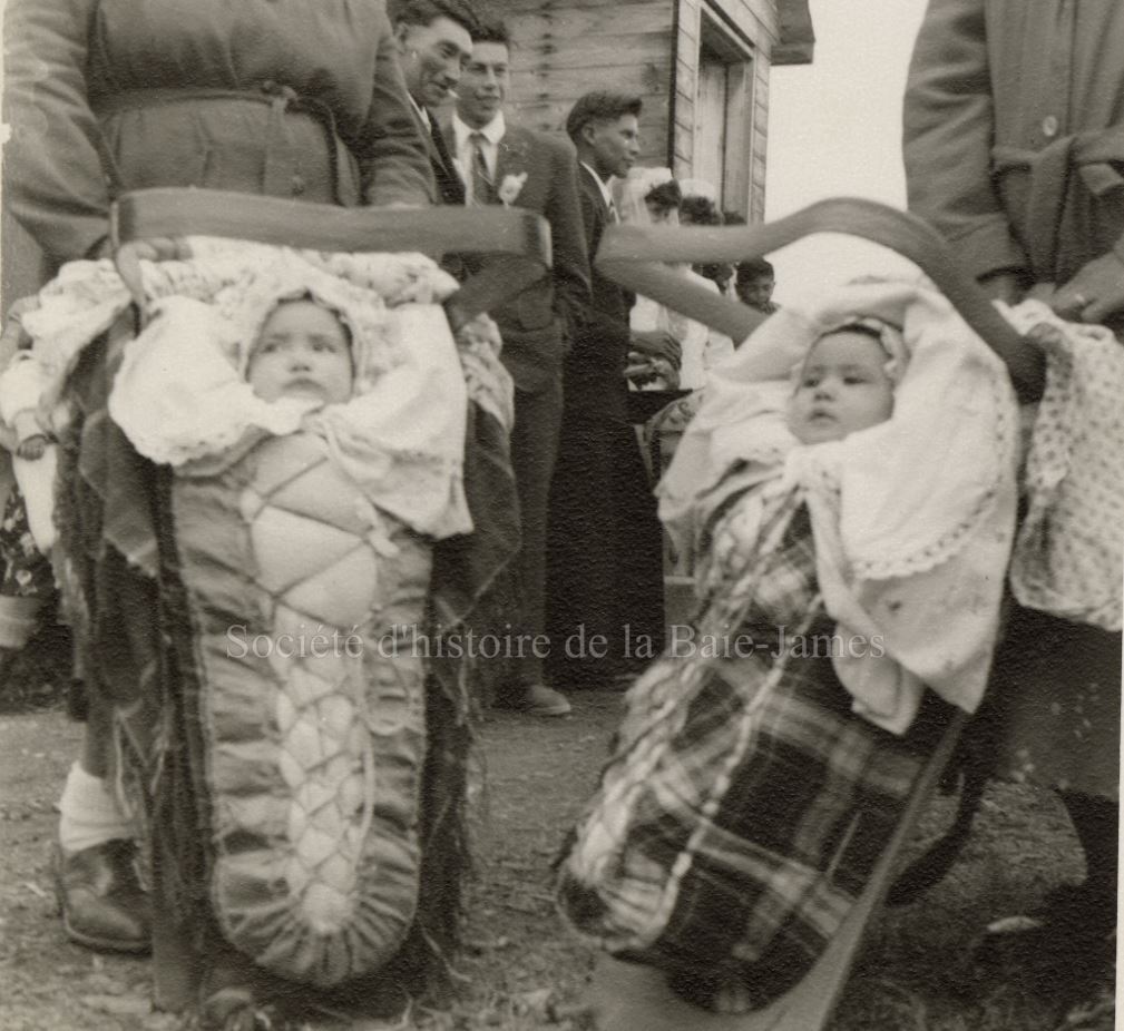 Deux bébés cris dans leur tikinagan. Baie James ontarienne. [1938?]. P195,S1,D1,P41