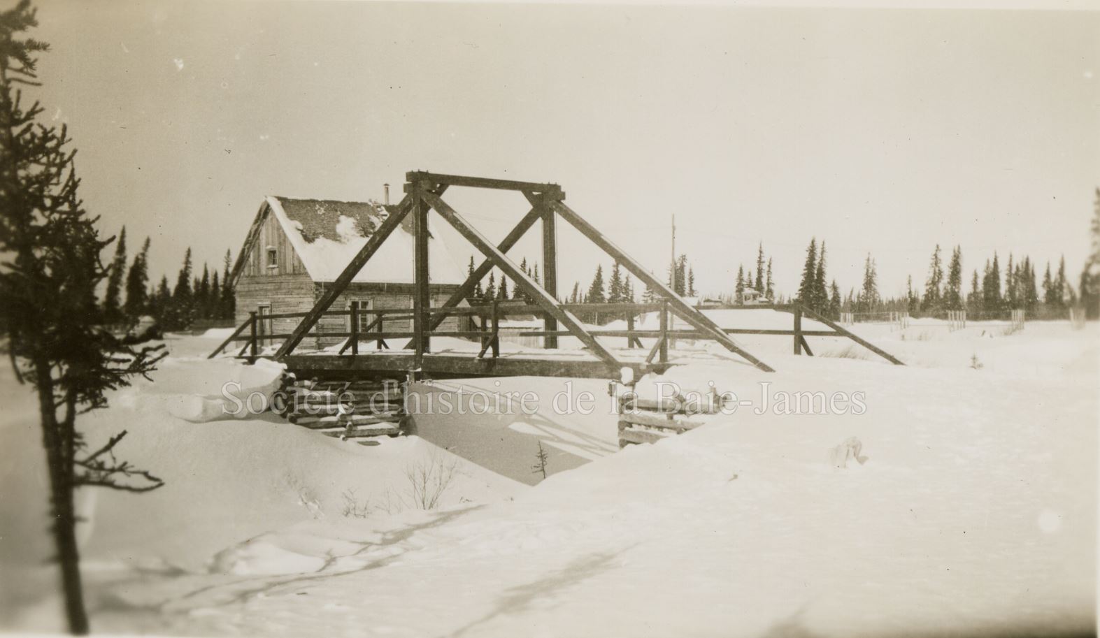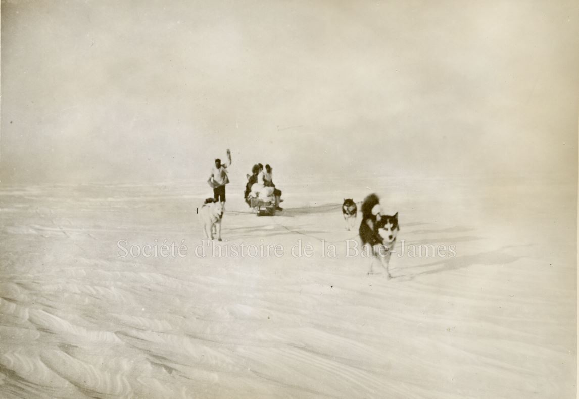Attelage de chiens de traîneaux sur la baie James, dans les années 1930. P195,S1,D1,P3.