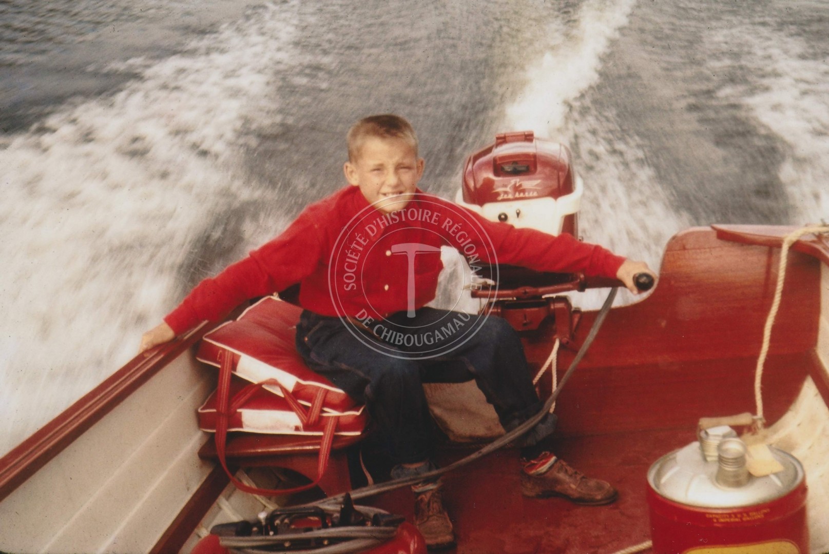 Chick Bidgood en hors-bord sur le lac aux Dorés vers 1954. P24,S2,P1.